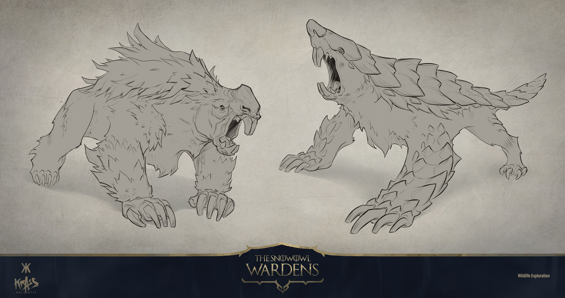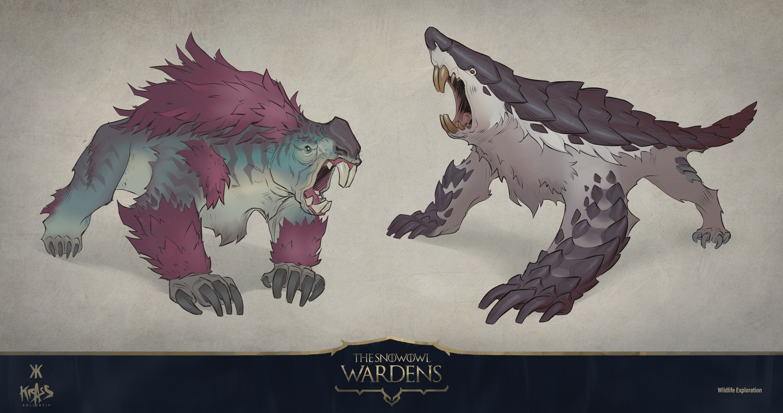 A series of burrowing predator concepts built around heavy forelimbs, plated backs, and strong silhouettes for a cold fantasy setting. I wanted them to feel brutal, low to the ground, and adapted to digging through frozen terrain.